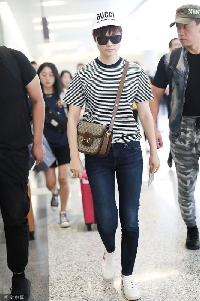 李宇春條紋裝扮現(xiàn)身機(jī)場(chǎng),青春活力,人氣爆棚