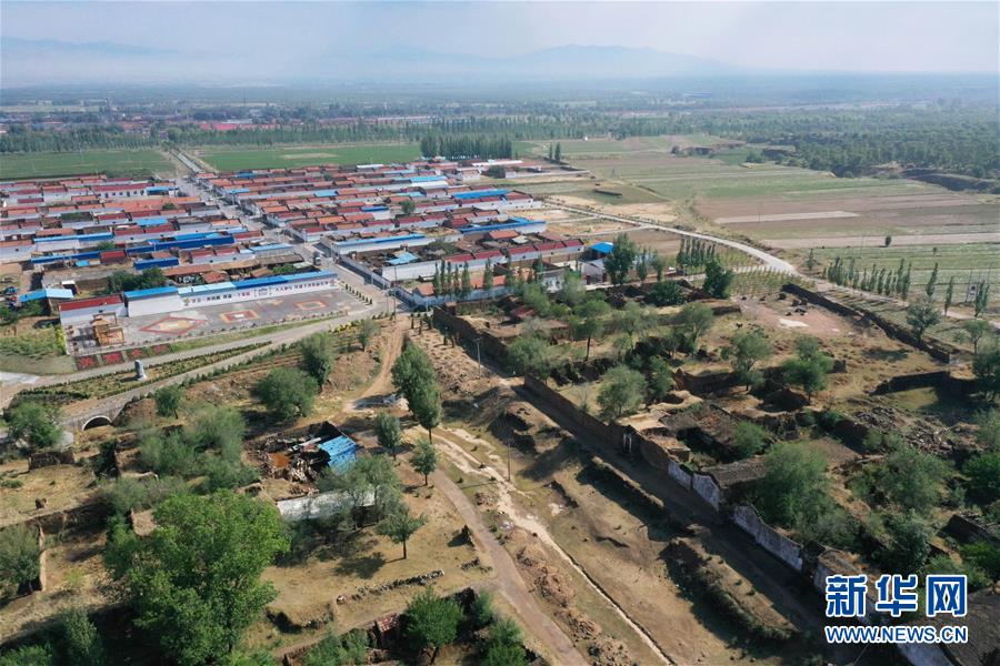 一條公路將東坪村的新村和舊村分隔開來(6月13日無人機拍攝)。 新華社記者 楊晨光 攝