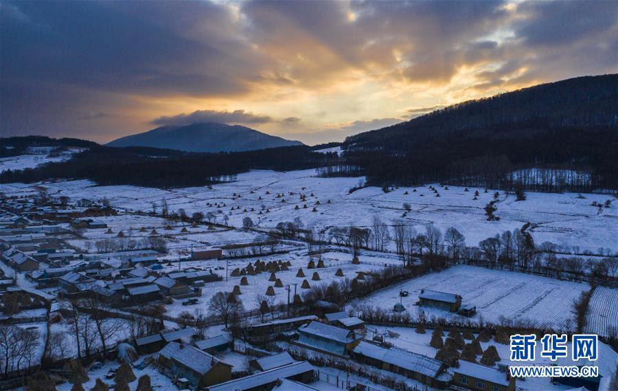 這是1月23日拍攝的二合雪鄉(xiāng)的日出(無人機拍攝)。新華社記者許暢攝