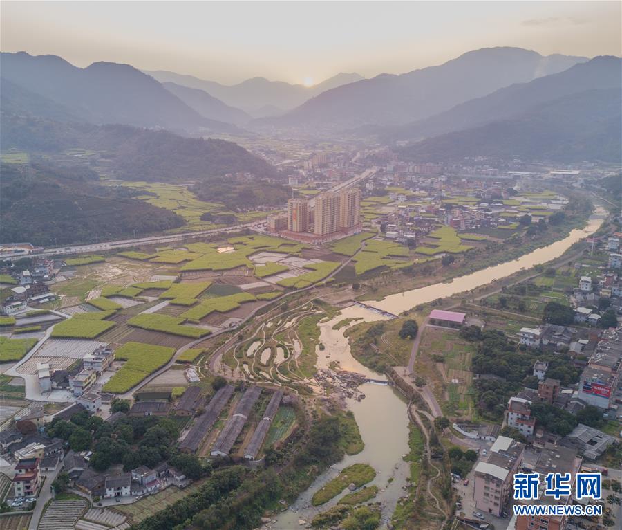這是福建省永春縣東關鎮(zhèn)桃溪流域田園風光(1月29日無人機拍攝)。 新華社記者 宋為偉 攝