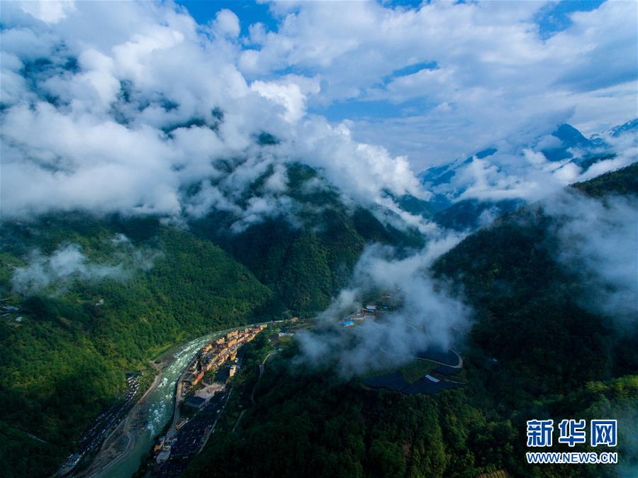 云霧繚繞的獨龍江峽谷,高黎貢山與擔(dān)當力卡山夾江而立(4月18日無人機拍攝)。 新華社記者 江文耀 攝
