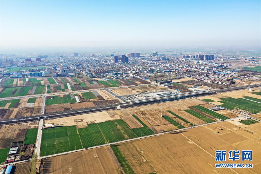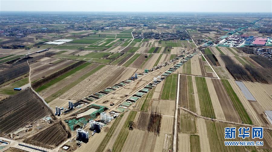 這是京雄城際鐵路施工現(xiàn)場(3月20日無人機拍攝)。新華社記者楊世堯攝