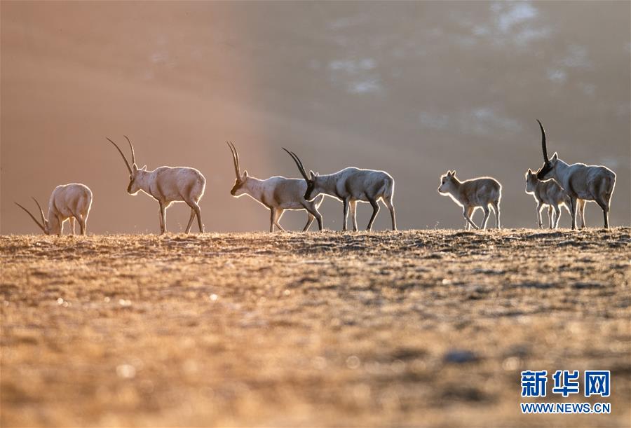 西藏羌塘自然保護(hù)區(qū)內(nèi)的藏羚羊(2019年1月31日攝)。新華社記者 普布扎西 攝