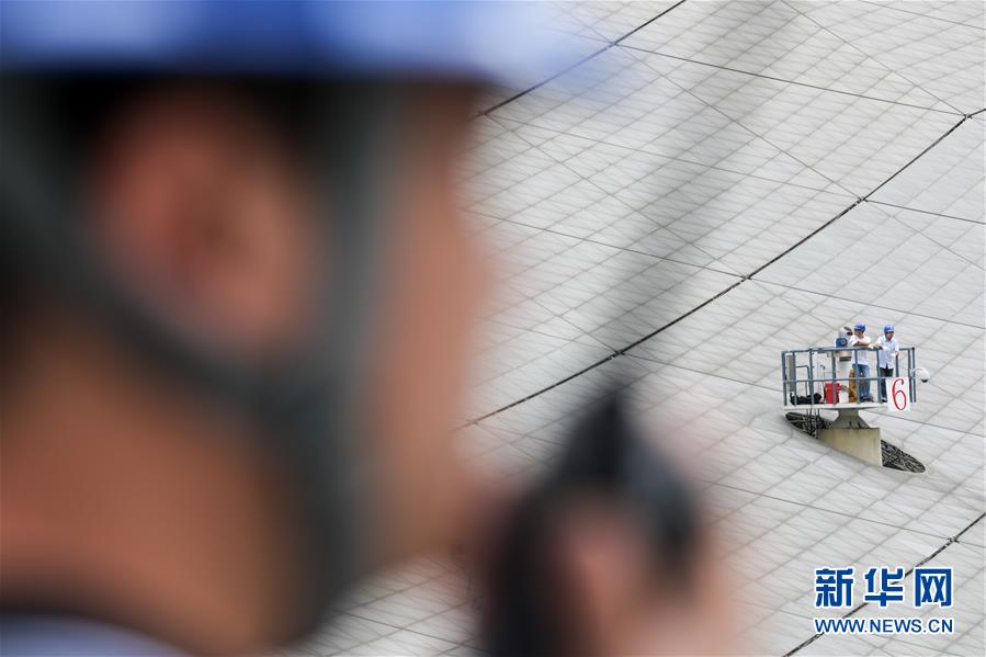 8月28日,工作人員在對FAST反射面板進(jìn)行檢修。 新華社記者 歐東衢 攝