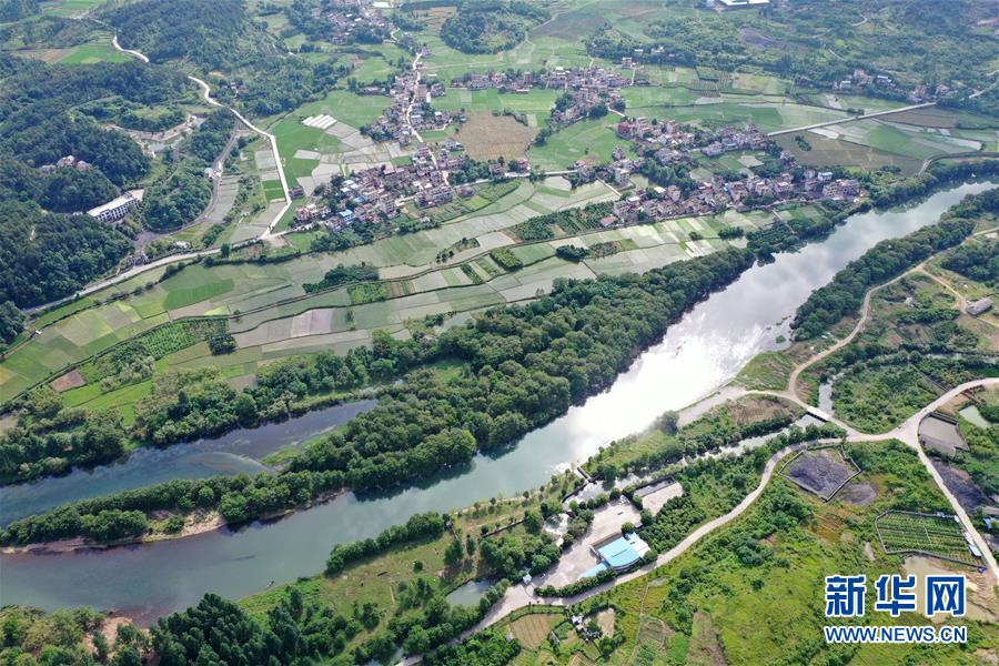 這是6月30日無(wú)人機(jī)拍攝的廣西興安縣靈渠及周邊景色。 位于廣西興安縣的靈渠是世界上保存最完整的古代水利工程之一,至今仍發(fā)揮著農(nóng)田灌溉、排洪泄洪作用。2018年,靈渠入選世界灌溉工程遺產(chǎn)名錄。 新華社記者 陸波岸 攝