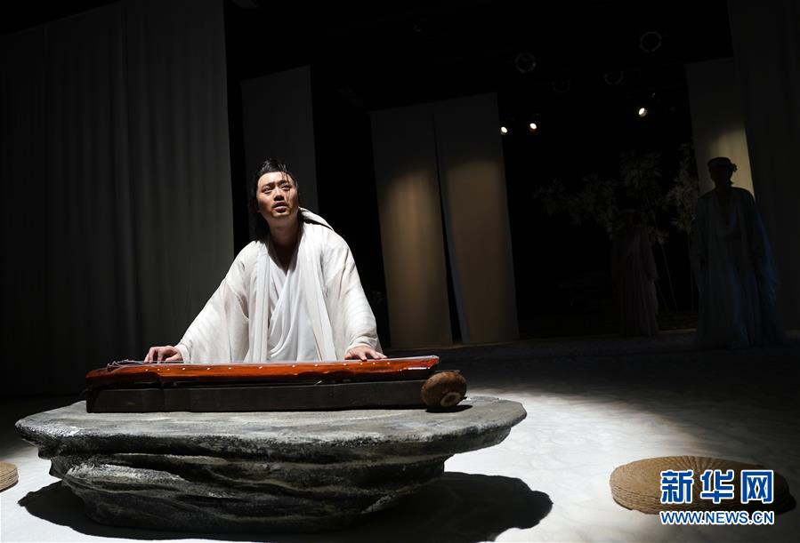 9月16日,演員在話劇《廣陵絕》中表演。 當(dāng)日,話劇《廣陵絕》在北京人藝實(shí)驗(yàn)劇場(chǎng)上演。該劇由中國(guó)戲劇家協(xié)會(huì)副主席王曉鷹任藝術(shù)指導(dǎo),龐貝編劇,通過(guò)魏晉名士嵇康與戰(zhàn)國(guó)刺客聶政的“同構(gòu)”拼貼,旨在展現(xiàn)中國(guó)傳統(tǒng)“道義”精神,反思生命與自由沖突,探討人的主體意識(shí)覺(jué)醒。 新華社記者 金良快 攝