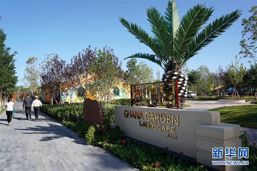 9月18日,參觀者在北京世園會加納展園內(nèi)參觀。 新華社記者 鞠煥宗 攝