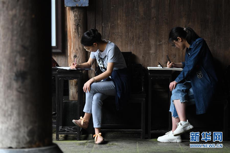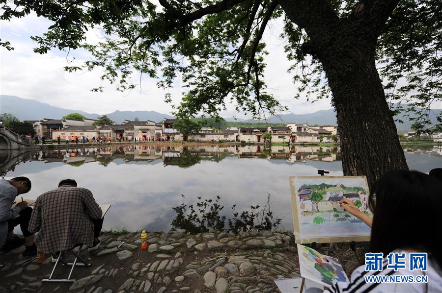 4月24日,繪畫愛好者在西遞風(fēng)景區(qū)寫生。新華社記者張端攝