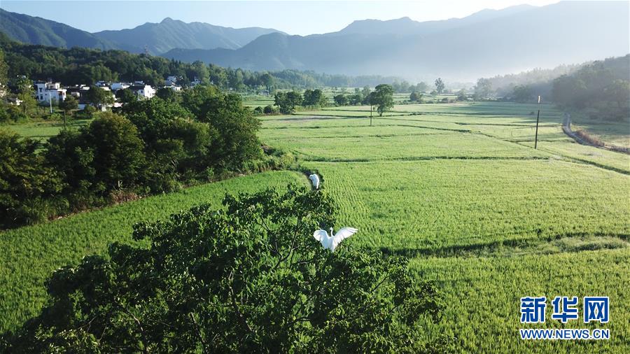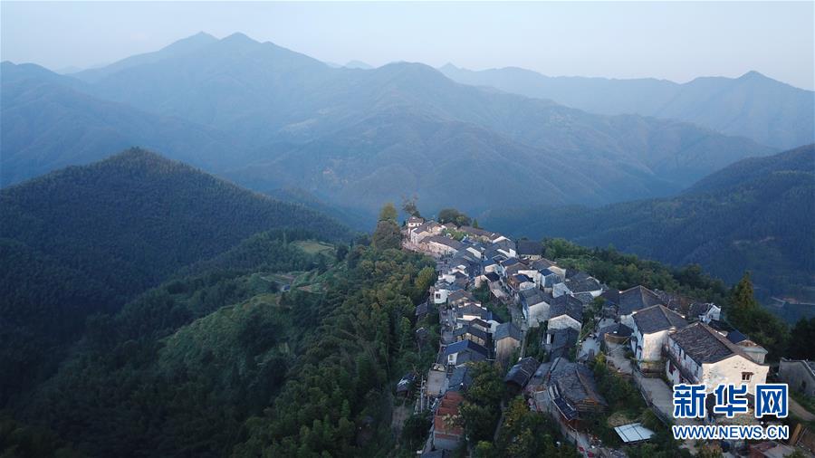 晨曦中的木梨硔村景色(9月18日無人機(jī)拍攝)。9月18日清晨,地處皖南山區(qū)的安徽省黃山市休寧縣木梨硔村沐浴在晨曦之中,靜謐祥和。新華社記者張端攝