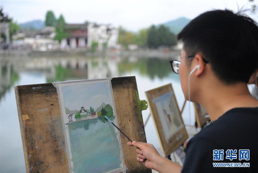 4月24日,繪畫愛好者在宏村風(fēng)景區(qū)寫生。新華社記者任鵬飛攝