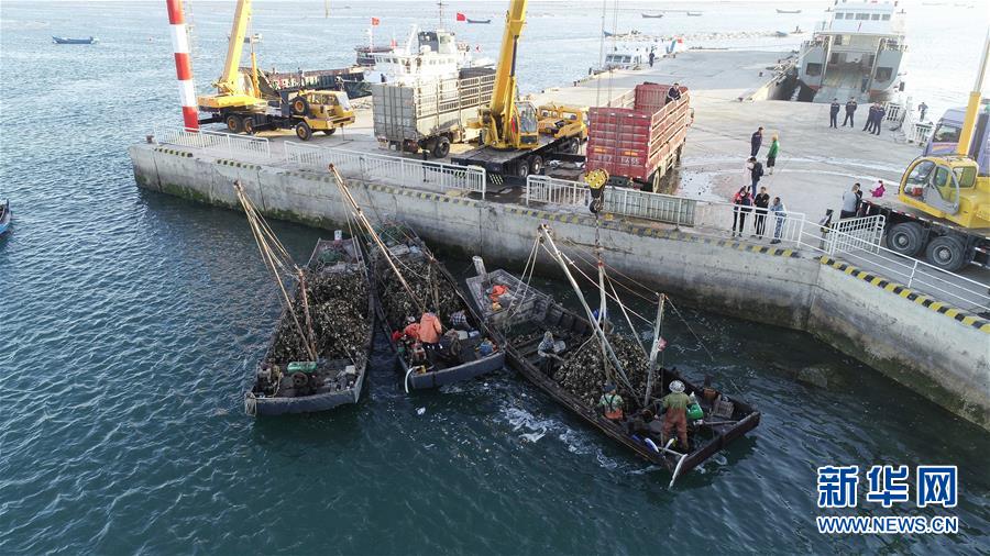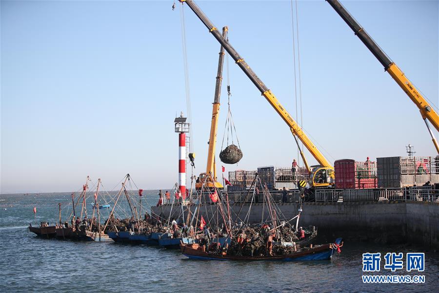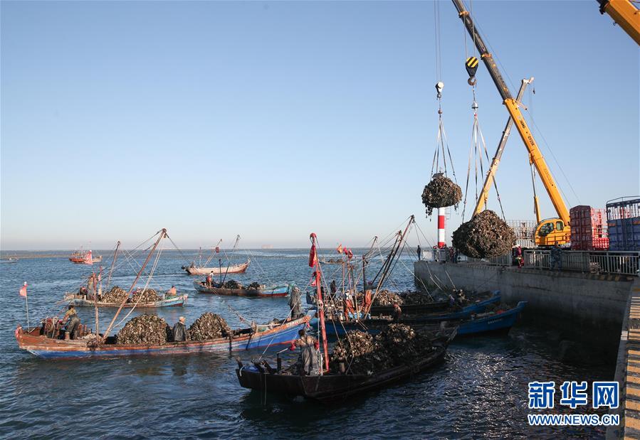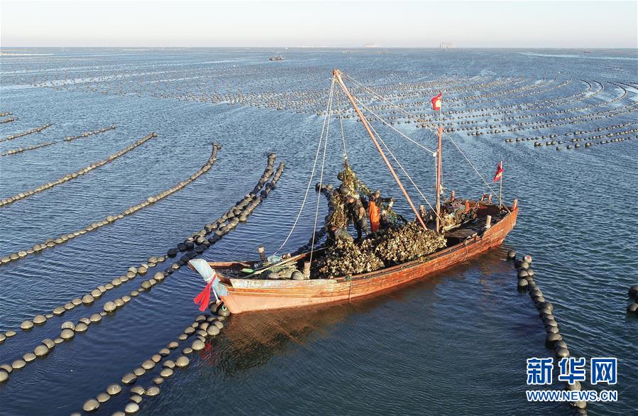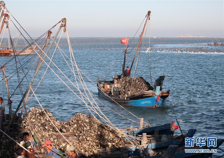 當(dāng)日,在遼寧省大連市長(zhǎng)??h廣鹿島海域,漁民忙碌地打撈牡蠣,呈現(xiàn)一片繁忙的豐收景象。近年來,大連市持續(xù)加強(qiáng)海洋牧場(chǎng)建設(shè),目前已累計(jì)建設(shè)海洋牧場(chǎng)約36萬公頃,投放各類魚礁約1578萬平方米,建立國(guó)家級(jí)海洋牧場(chǎng)示范區(qū)14處。
