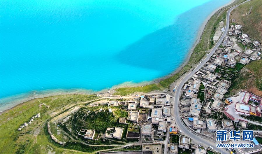 這是普姆雍錯(cuò)湖邊的堆瓦村(9月19日無人機(jī)拍攝)。新華社記者晉美多吉攝