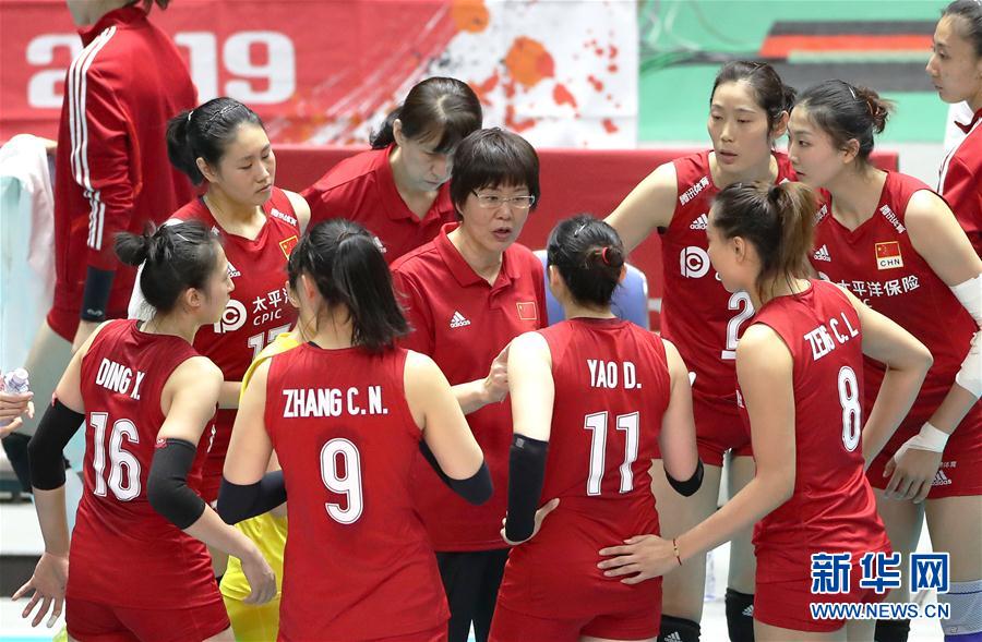 9月22日,中國隊主教練郎平(中)在比賽間隙指導(dǎo)球員。當日,在日本札幌舉行的2019年女排世界杯賽第二階段A組循環(huán)賽比賽中,中國隊以3比2戰(zhàn)勝巴西隊。新華社記者杜瀟逸攝