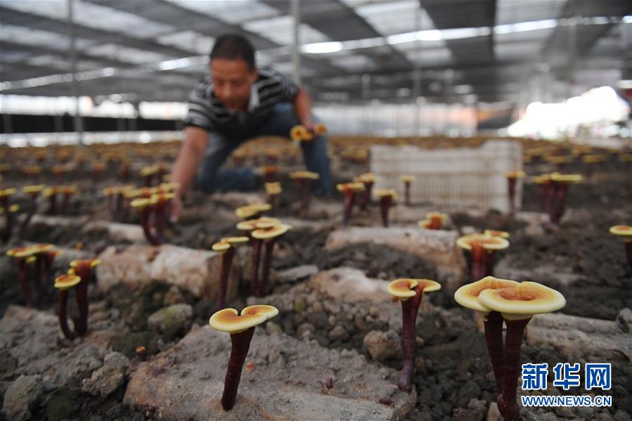 9月25日,在福建省南平市浦城縣蓮塘鎮(zhèn)山橋村,技術(shù)員在采摘靈芝。 近年來(lái),福建省南平市浦城縣利用當(dāng)?shù)鬲?dú)特的生態(tài)資源,依托特色靈芝產(chǎn)業(yè),發(fā)揮龍頭企業(yè)示范作用,通過(guò)公司+基地+貧困戶入股等方式,輻射帶動(dòng)17個(gè)鄉(xiāng)鎮(zhèn)約300戶貧困戶增收。 新華社記者 宋為偉 攝