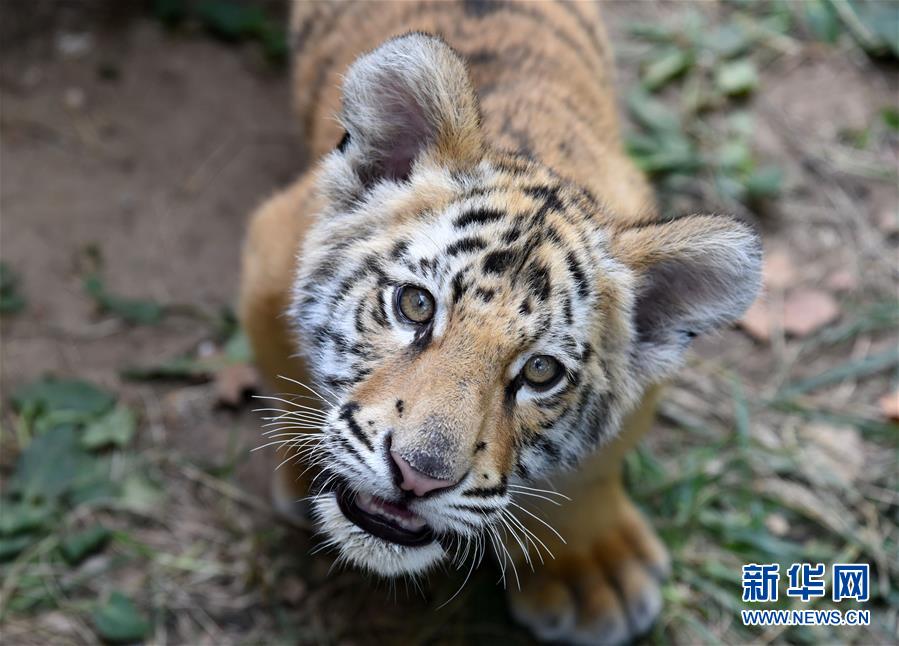 9月26日,孟加拉虎寶寶“小七”在進(jìn)食。 新華社記者 王凱 攝