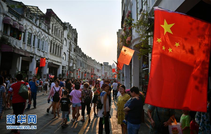 10月1日,游客在海口騎樓老街參觀游玩。當(dāng)日是國慶節(jié),全國各地的人們用各種方式歡度節(jié)日。新華社記者 郭程 攝