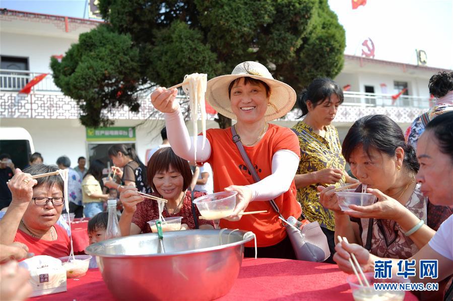 10月1日,在江西省南昌市南昌縣銀三角敷林村,當(dāng)?shù)卮迕衽e行“同吃國慶面 共迎國慶節(jié)”活動(dòng)。當(dāng)日是國慶節(jié),全國各地的人們用各種方式歡度節(jié)日。新華社記者 彭昭之 攝