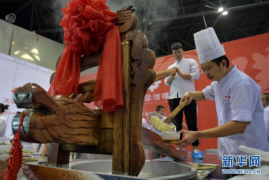 10月3日,面食師傅們?cè)谥谱骱訐泼?。新華社記者 曹陽(yáng) 攝