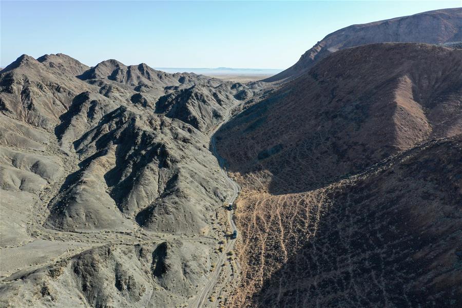 9月25日,內(nèi)蒙古自治區(qū)額濟(jì)納旗算井子邊境派出所的民警開(kāi)車(chē)對(duì)轄區(qū)進(jìn)行巡護(hù)(無(wú)人機(jī)拍攝)。新華社記者劉磊攝