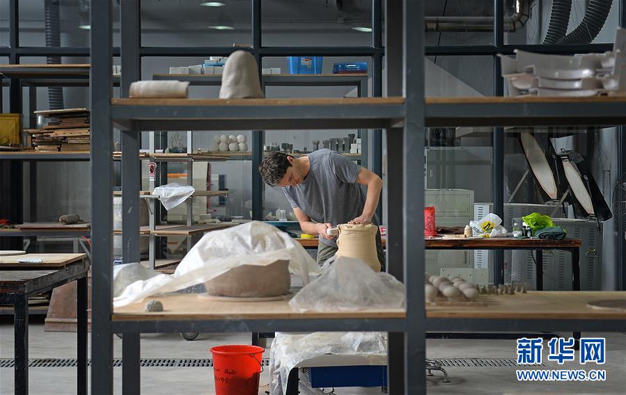 在江西景德鎮(zhèn)陶溪川國際工作室,一名來自美國的藝術(shù)家在制作陶瓷藝術(shù)品(2016年10月20日攝)。新華社記者 萬象 攝