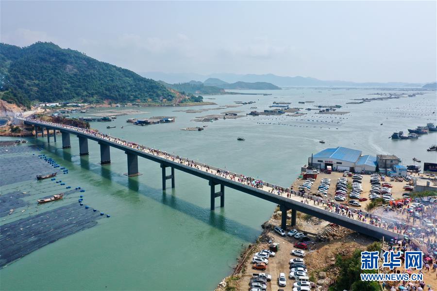 10月12日,福建省霞浦縣東安島海防大橋正式通車(無人機拍攝)。