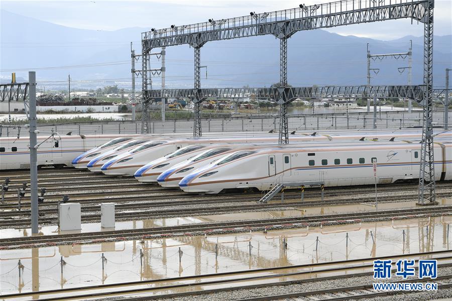 10月14日,在日本長(zhǎng)野市,東日本鐵路公司長(zhǎng)野新干線車輛中心的新干線列車被洪水浸泡。受縱貫東日本強(qiáng)臺(tái)風(fēng)“海貝思”帶來(lái)的強(qiáng)降雨影響,日本多地暴發(fā)洪災(zāi),已造成33人死亡、19人失蹤。據(jù)日本共同社13日統(tǒng)計(jì),“海貝思”過(guò)境導(dǎo)致日本多處河流泛濫,目前有21條河流決堤24處。其中,流經(jīng)長(zhǎng)野縣的千曲川決堤,造成長(zhǎng)野市和千曲市大范圍被淹,大片住宅區(qū)被洪水包圍,有的房屋甚至被淹至2層。新華社記者華義攝