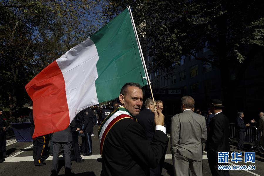 10月14日,在美國紐約曼哈頓第五大道,一名男子手舉意大利國旗參加哥倫布日游行。當(dāng)天,紐約舉行哥倫布日游行,紀(jì)念意大利航海家克里斯托弗·哥倫布首次到達美洲大陸。哥倫布日游行也是美國最大的展示意大利文化傳統(tǒng)的慶?;顒?。新華社記者李木子攝