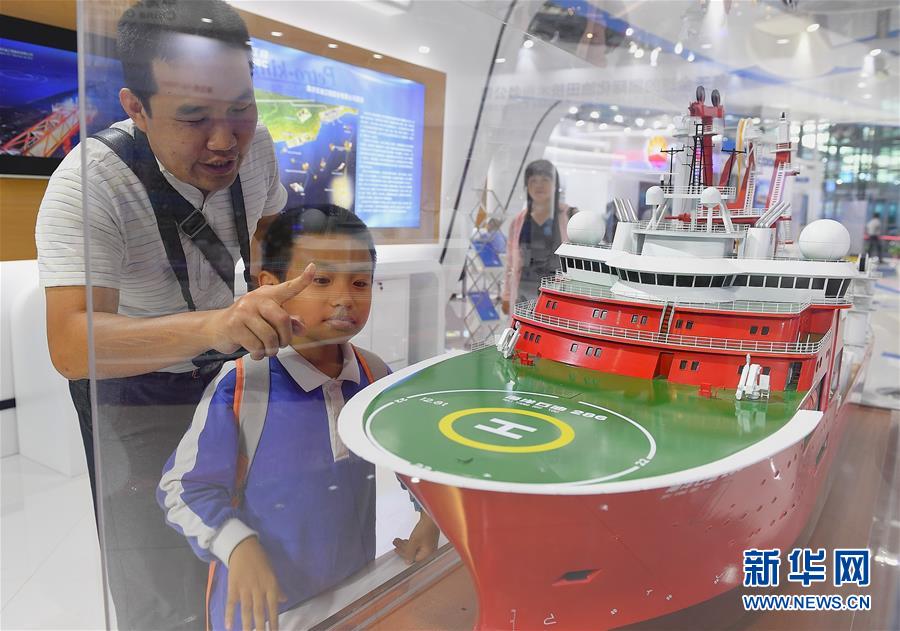10月15日,觀眾在招商局展臺(tái)了解首艘國(guó)產(chǎn)極地探險(xiǎn)郵輪“格雷格·莫蒂默”號(hào)。 當(dāng)日,2019中國(guó)海洋經(jīng)濟(jì)博覽會(huì)在深圳開幕,大批海洋“大國(guó)重器”及高新技術(shù)研發(fā)成果亮相。 中國(guó)海洋經(jīng)濟(jì)博覽會(huì)被譽(yù)為“中國(guó)海洋第一展”。2019中國(guó)海洋經(jīng)濟(jì)博覽會(huì)以“藍(lán)色機(jī)遇、共創(chuàng)未來(lái)”為主題,吸引450余家企業(yè)和機(jī)構(gòu)參展,將重點(diǎn)圍繞現(xiàn)代港口建設(shè)、海洋高新技術(shù)與裝備制造、海洋可再生能源利用、海水淡化與綜合利用等熱點(diǎn)領(lǐng)域,推出新技術(shù)成果,推進(jìn)中外企業(yè)洽談合作。 新華社記者毛思倩攝