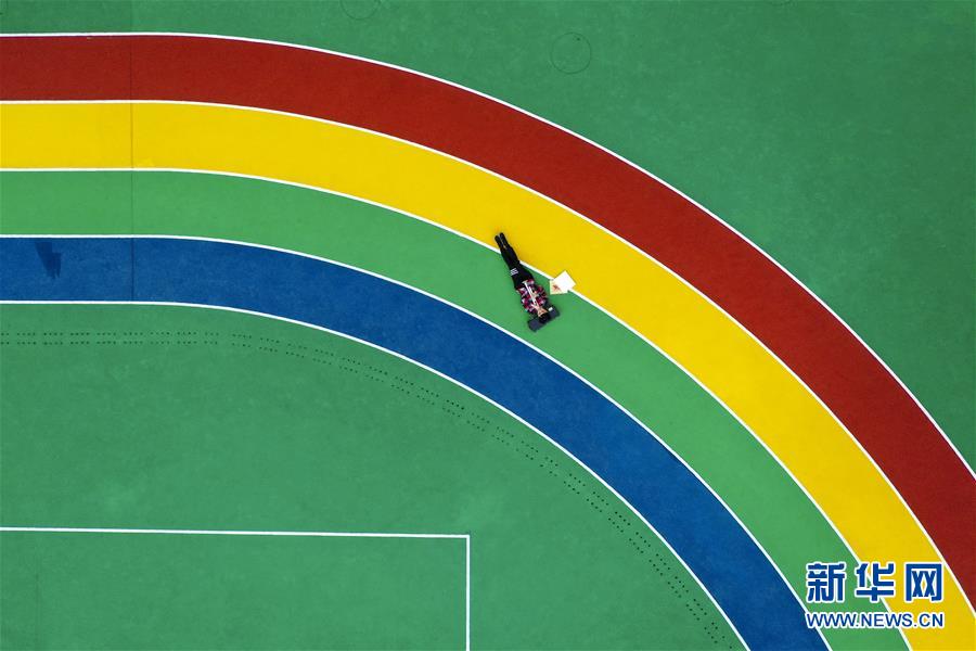 午休時(shí)間,王太樊在學(xué)校的操場上練習(xí)小號、背誦樂譜(10月10日無人機(jī)拍攝)。 新華社記者 劉潺 攝