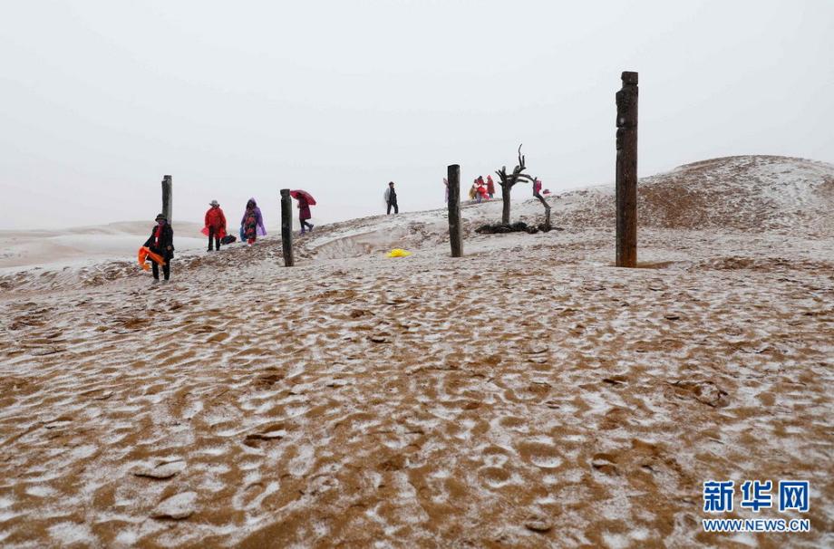 大漠沙覆雪:寧夏沙波頭迎來降雪