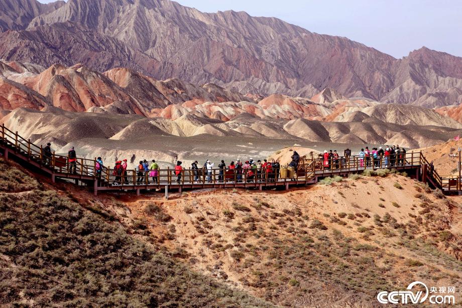 央視網(wǎng)消息:2019年10月15日,金秋時節(jié),位于甘肅省張掖市臨澤縣的七彩丹霞景區(qū)進入旅游旺季,吸引眾多游人紛至沓來。張掖七彩丹霞景區(qū),分布面積約50公里,是中國北方干旱地區(qū)發(fā)育最典型的丹霞地貌。在方圓數(shù)十平方公里的范圍內(nèi),隨處可見有紅、黃、橙、綠、白等多種鮮艷的色塊或線條,把一座座山峰,一條條溝壑,裝點成一幅幅絢麗多姿、燦爛奪目的畫圖。圖片來源:視覺中國