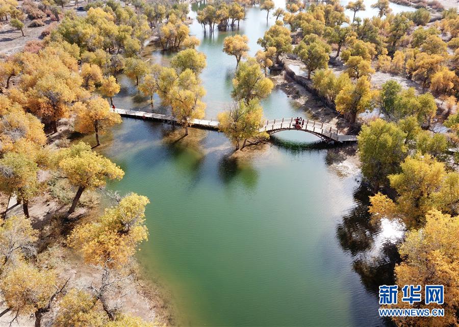 這是在內(nèi)蒙古自治區(qū)額濟(jì)納旗拍攝的胡楊林(10月16日無人機(jī)拍攝)。新華社記者丁洪法攝