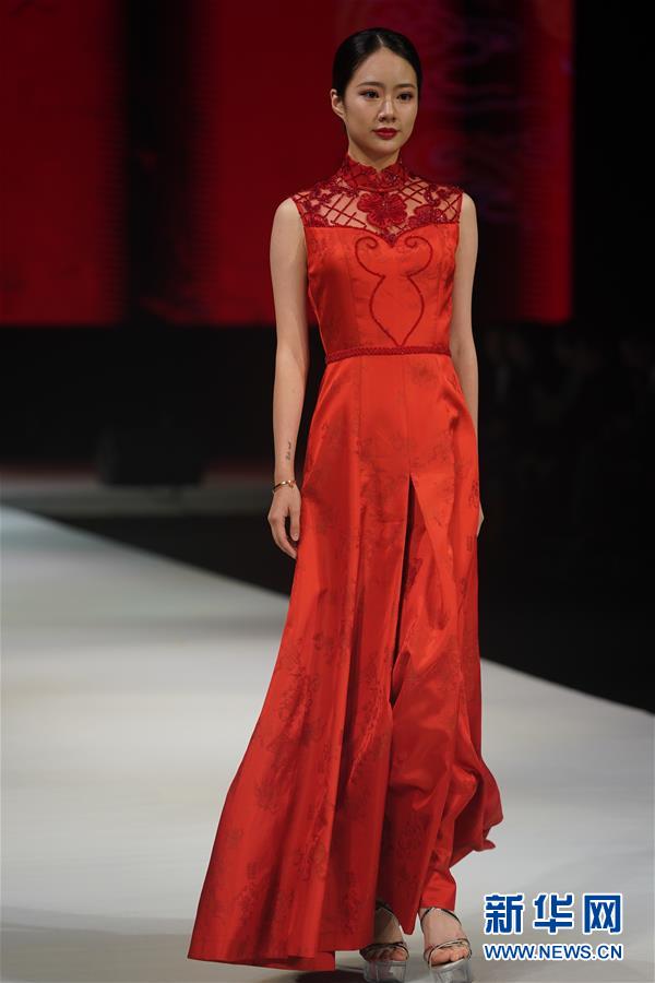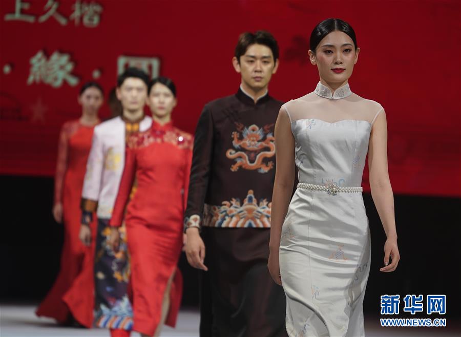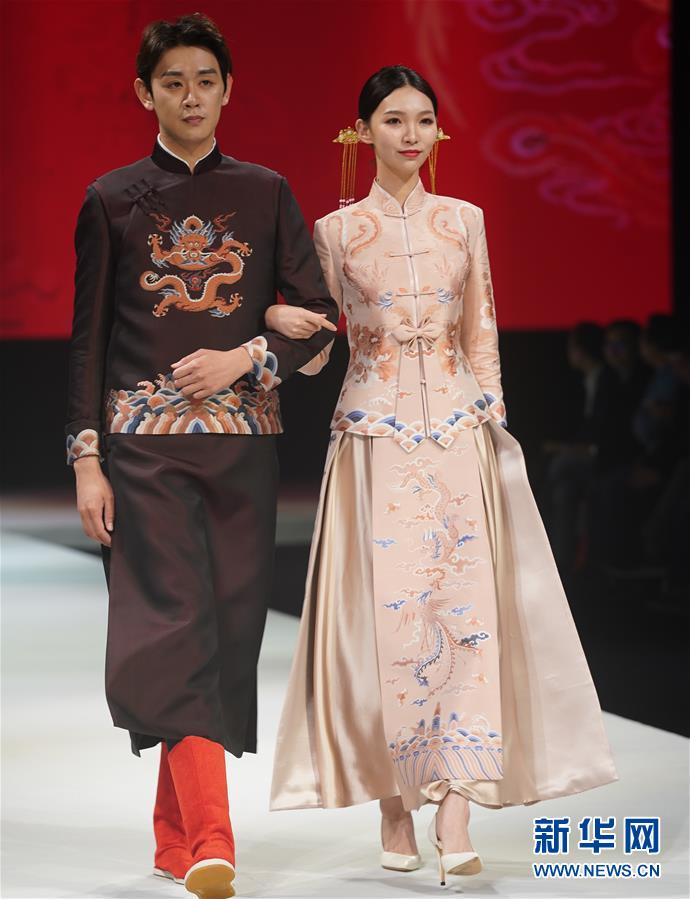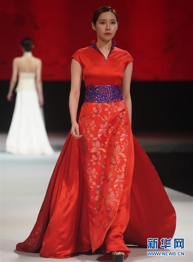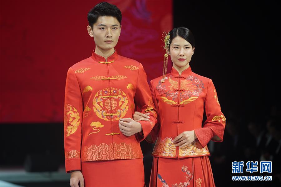 10月16日,“愿·緣·圓”上久楷婚慶主題秀在江蘇省蘇州市吳江區(qū)盛澤鎮(zhèn)舉行。主題秀上展示大量帶有龍鳳、牡丹、海棠、彩蝶等中國(guó)傳統(tǒng)文化元素的宋錦中式婚慶禮服。 新華社記者 季春鵬 攝