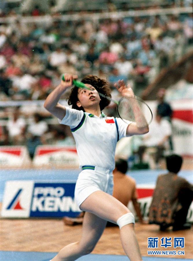 圖為韓愛萍在吉隆坡舉行的世界羽毛球男女團體錦標賽中舉拍回擋對方的擊球(資料照片),最終中國隊奪得女子團體冠軍。新華社記者黃景達攝