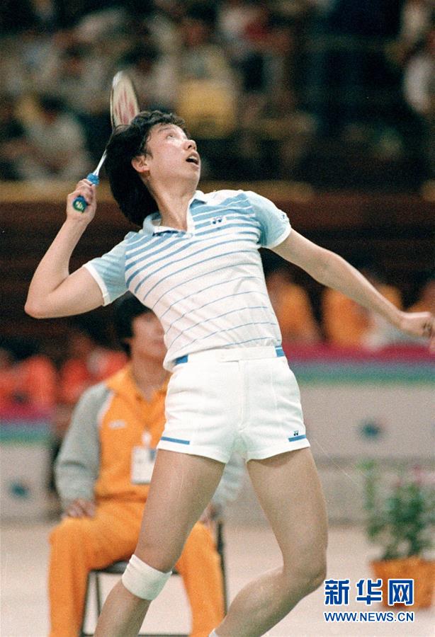 圖為韓愛萍在韓國漢城(首爾)舉行的第十屆亞洲運(yùn)動(dòng)會羽毛球女子單打比賽中擊球(資料照片),她最終奪得女單冠軍。新華社記者胡越攝