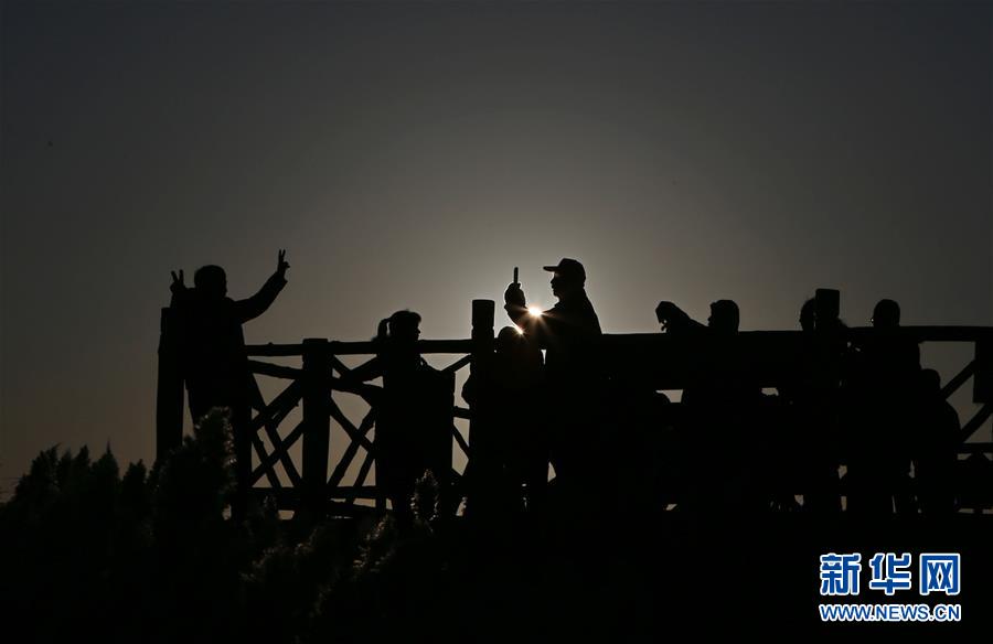 10月17日,游客在居延海游覽。 新華社記者 丁洪法 攝