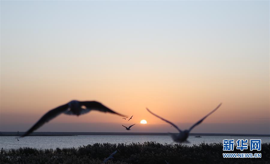這是10月17日拍攝的居延海日出。新華社記者 丁洪法 攝