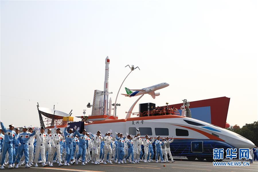 10月1日上午,慶祝中華人民共和國成立70周年大會在北京天安門廣場隆重舉行。這是“創(chuàng)新驅動”方陣。 新華社記者 劉續(xù) 攝