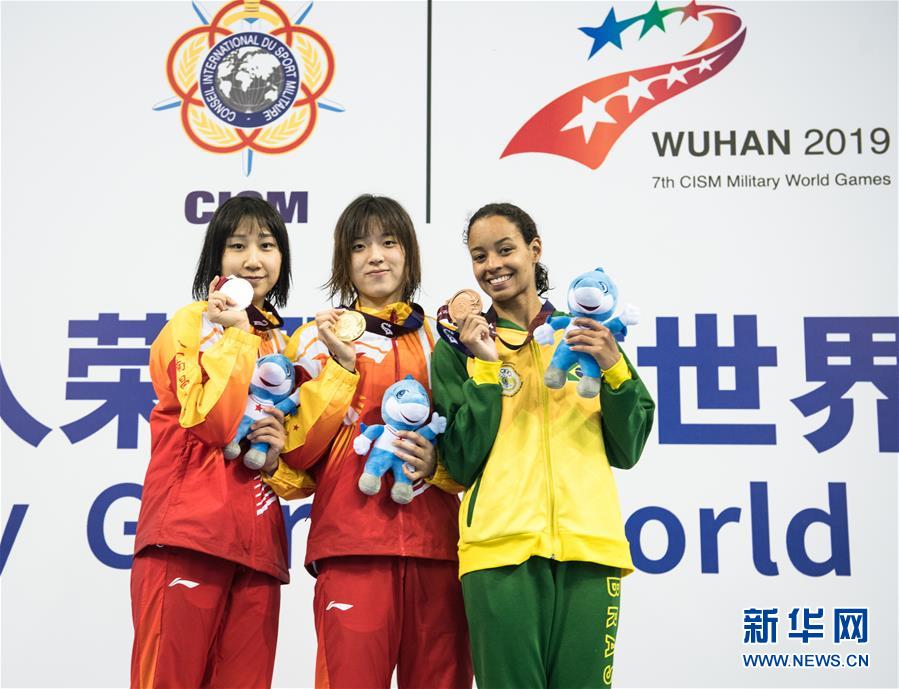 10月20日,冠軍中國(guó)隊(duì)選手吳慧敏(中)、亞軍中國(guó)隊(duì)選手包雪怡(左)在頒獎(jiǎng)儀式上。新華社記者肖藝九攝