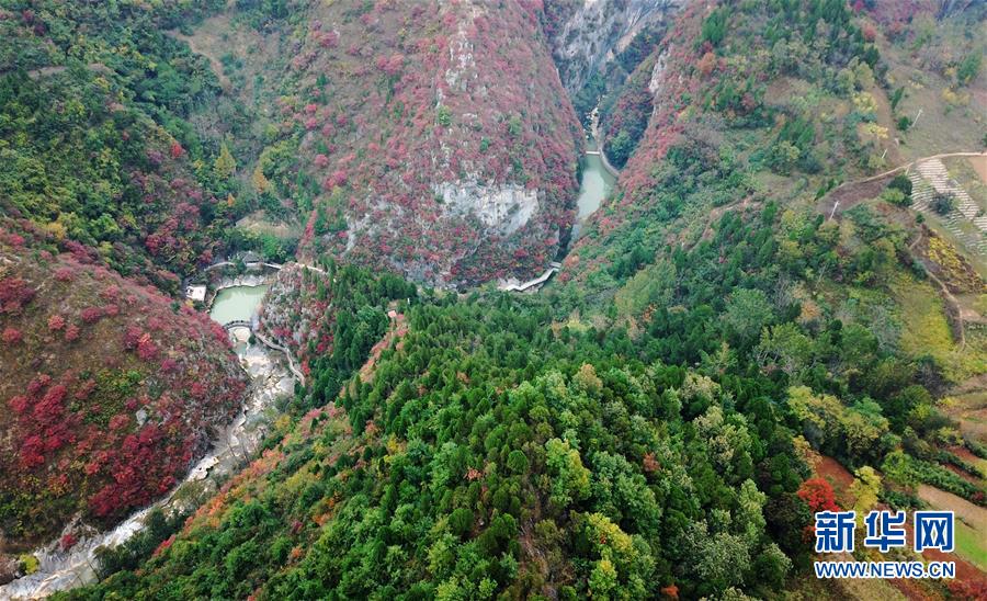 這是10月19日無人機拍攝的河北省涉縣太行紅葉大峽谷景色。新華社記者王曉攝