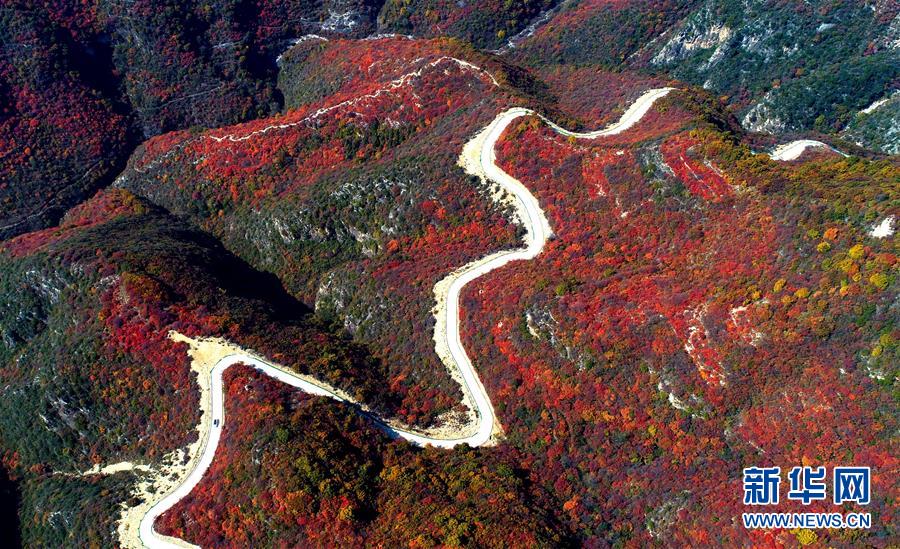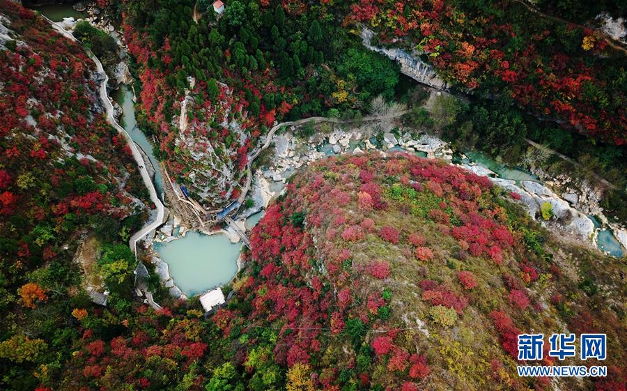 這是10月19日無人機拍攝的河北省涉縣太行紅葉大峽谷景色。金秋十月,河北省涉縣偏城鎮(zhèn)太行紅葉大峽谷的紅葉進入觀賞佳期,吸引眾多游客前來登山賞景。新華社記者王曉攝