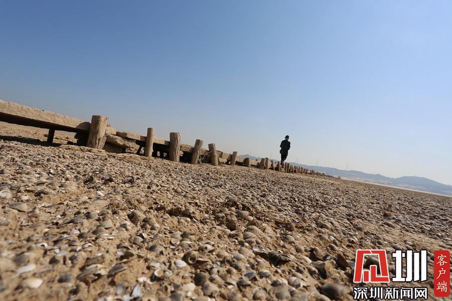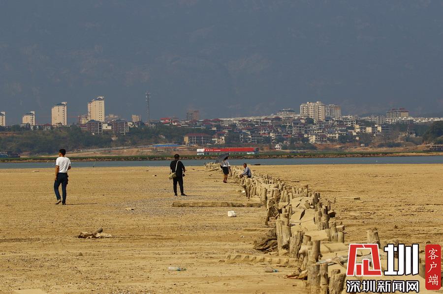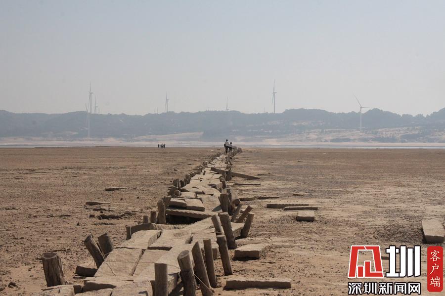 江西九江,隨著水位持續(xù)下降,豐水期浸泡在鄱陽湖底被譽(yù)為“中國(guó)最長(zhǎng)的湖中古木石橋”露出水面。