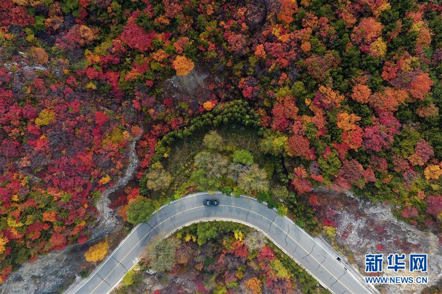 車(chē)輛行駛在山西省太原市玉泉山盤(pán)山公路上(10月22日無(wú)人機(jī)拍攝)。