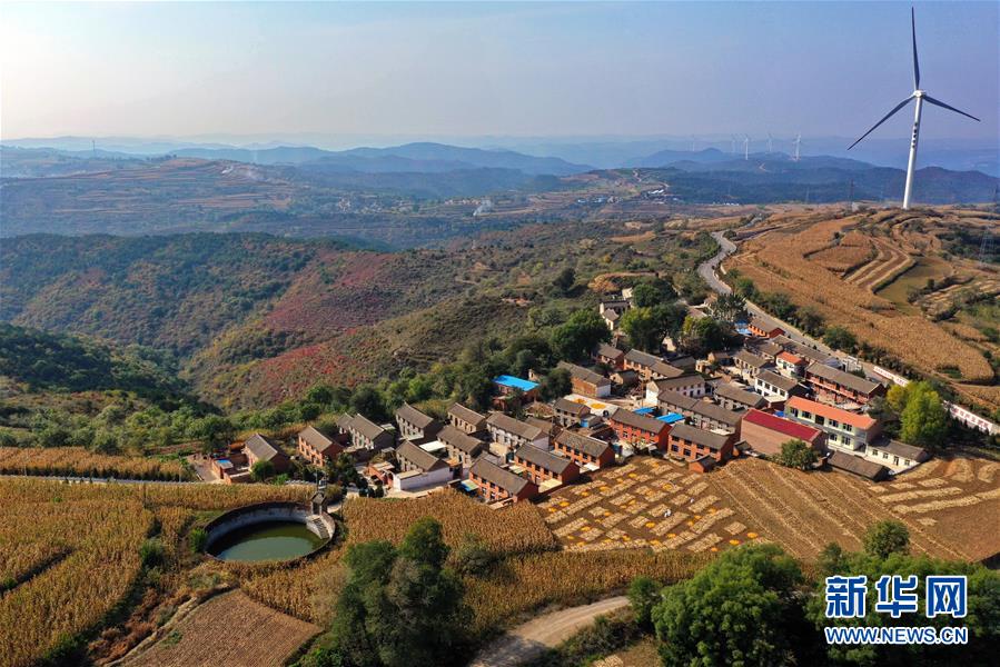 山西省晉城市陵川縣奪火鄉(xiāng)高谷堆村附近的景色(10月13日無人機拍攝)。