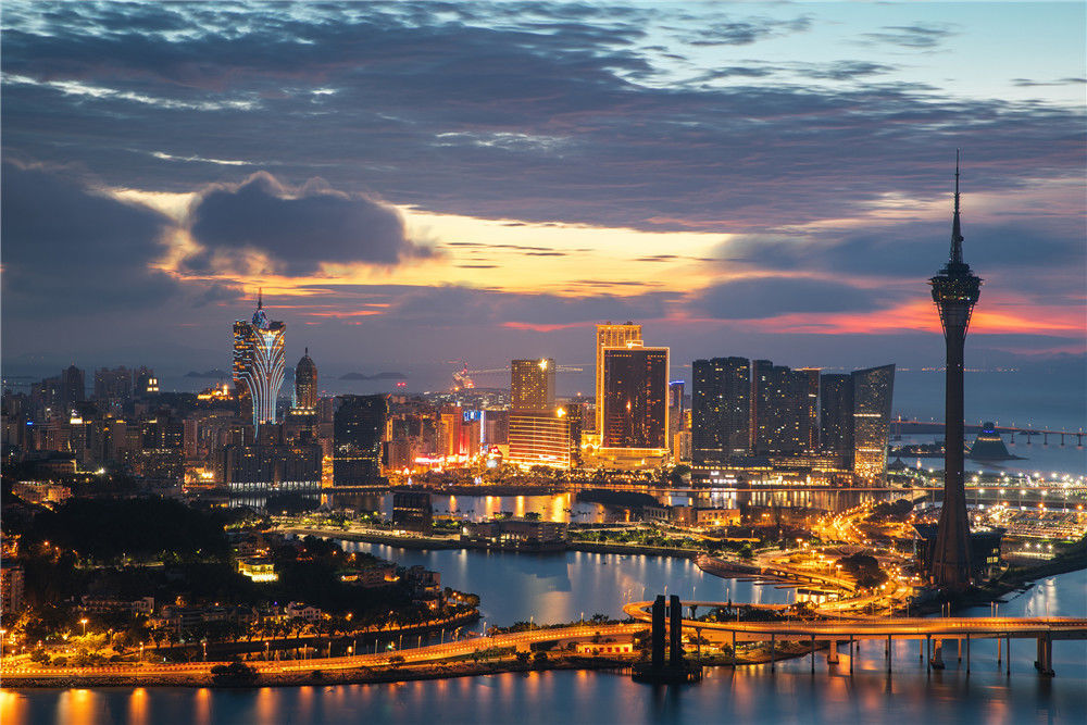 2018年6月16日,澳門(mén),城市風(fēng)光。遠(yuǎn)處的港珠澳大橋。徐小天/視覺(jué)中國(guó)