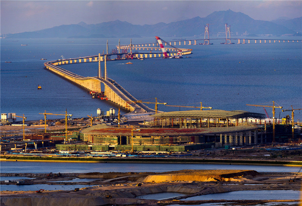 晨曦中的港珠澳大橋珠澳口岸人工島(10月24日無(wú)人機(jī)拍攝)。2018年10月23日,港珠澳大橋正式開(kāi)通。在這座圓夢(mèng)橋、同心橋、自信橋、復(fù)興橋開(kāi)通一周年之際,記者親自體驗(yàn)“一橋連三地、一日游三城”的悠閑與便利,于不同的旖旎風(fēng)光中自在游覽,在不同的城市風(fēng)貌間自如切換。新華社記者張金加攝