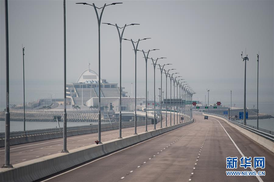 10月24日午后,車(chē)輛駛往港珠澳大橋東人工島。2018年10月23日,港珠澳大橋正式開(kāi)通。新華社記者張金加攝