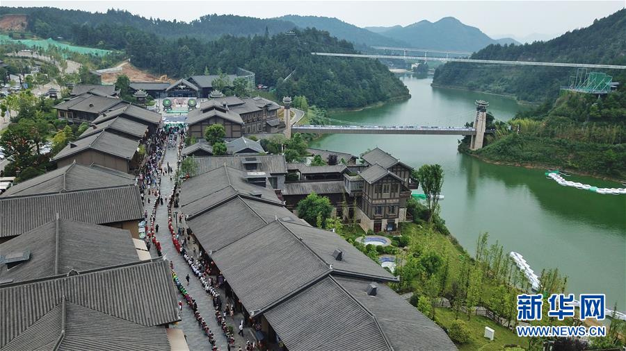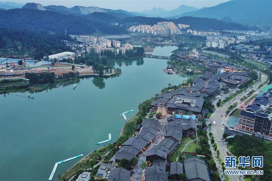 7月2日無人機(jī)拍攝的丹寨萬達(dá)小鎮(zhèn)一角。2017年7月,貴州省丹寨縣的丹寨萬達(dá)小鎮(zhèn)對外開放。兩年來,丹寨萬達(dá)小鎮(zhèn)游客接待量持續(xù)增長,為700余名貧困戶提供就業(yè)崗位,有力助推了丹寨縣的脫貧攻堅(jiān)工作。新華社記者歐東衢攝