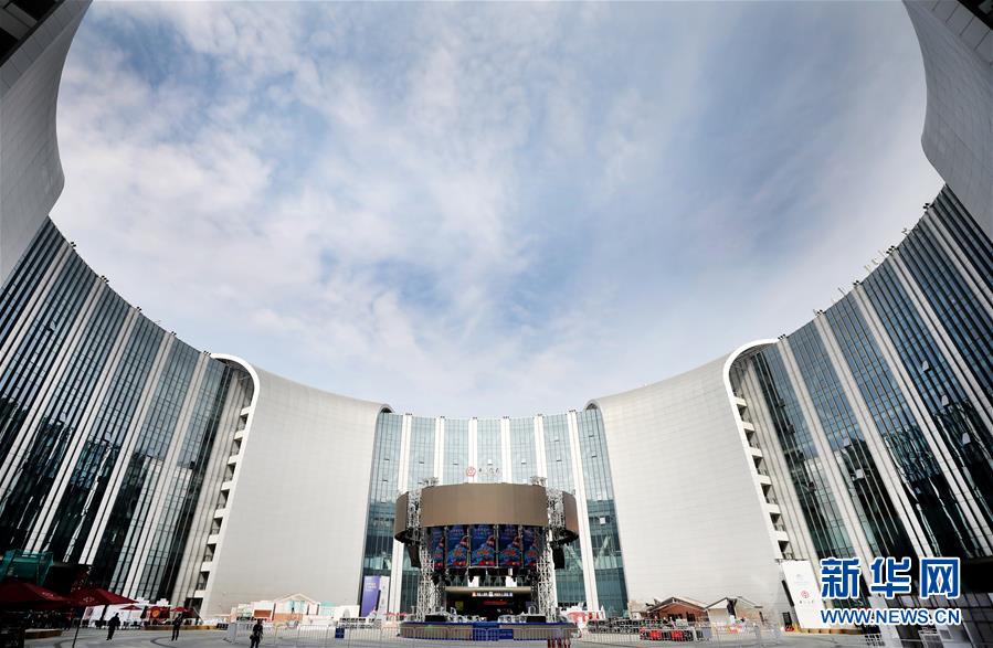 這是10月25日拍攝的國家會展中心(上海)西入口處。 第二屆中國國際進口博覽會開幕在即,在進博會舉辦地、國家會展中心(上海)內(nèi),展館搭建施工人員和展會志愿者們在進行從展臺搭建到完善觀展標識等的布展準備工作。   新華社記者 方喆攝