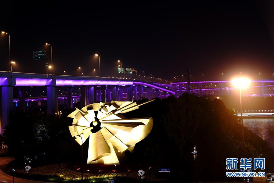 10月25日晚在國家會展中心(上海)周邊地區(qū)拍攝的夜景。新華社記者張建松攝
